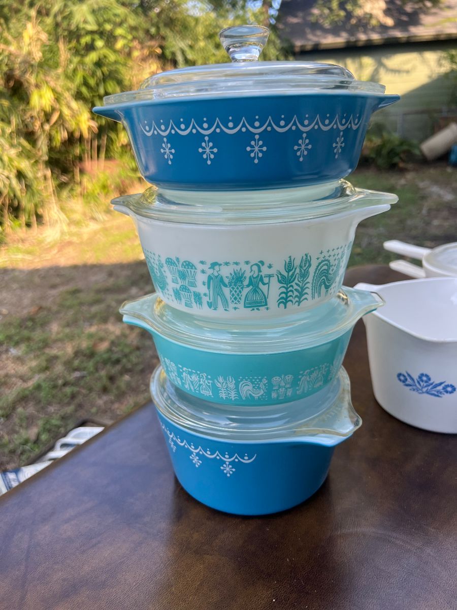 Vintage Pyrex and Corning ware.