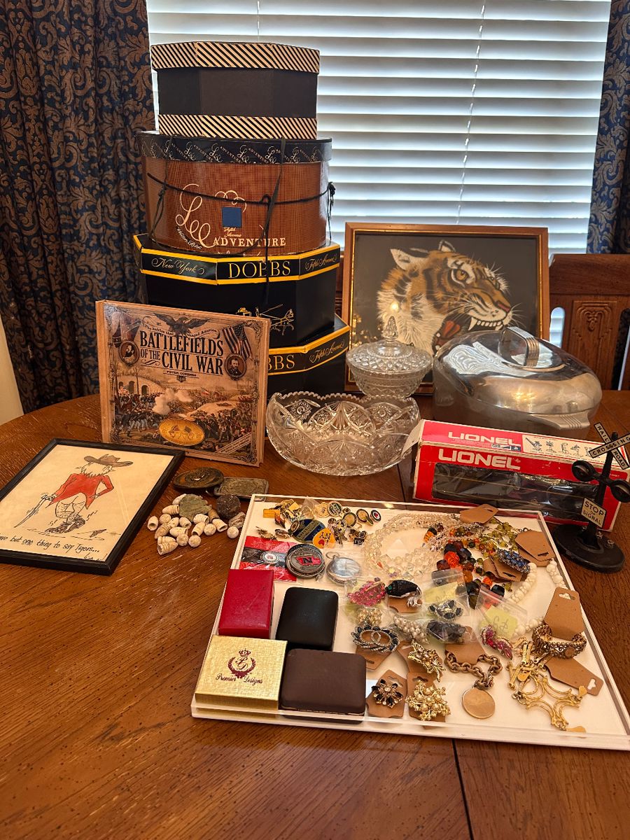This sale has something for everyone! Well organized and easy to shop. You'll find items you need, items you want, and items to give as Christmas gifts!!! Items include some of the following: a large selection of Christmas decor and Christmas items (including Christmas trees, ornaments, wreathes, and more!), Civil War and WWII memorabilia, LSU memorabilia, vintage Lionel train sets, Bassett sofa and love seat, wool area rugs, new kitchen items, vintage kitchen items (Magnalite, Corning Ware, Pyrex, etc.), vintage glassware including several American Brilliant Glass pieces, collectible spoons, collectible stamps, silver items, records, DVDs, CDs, VHS, TVs, collectible spoons,...