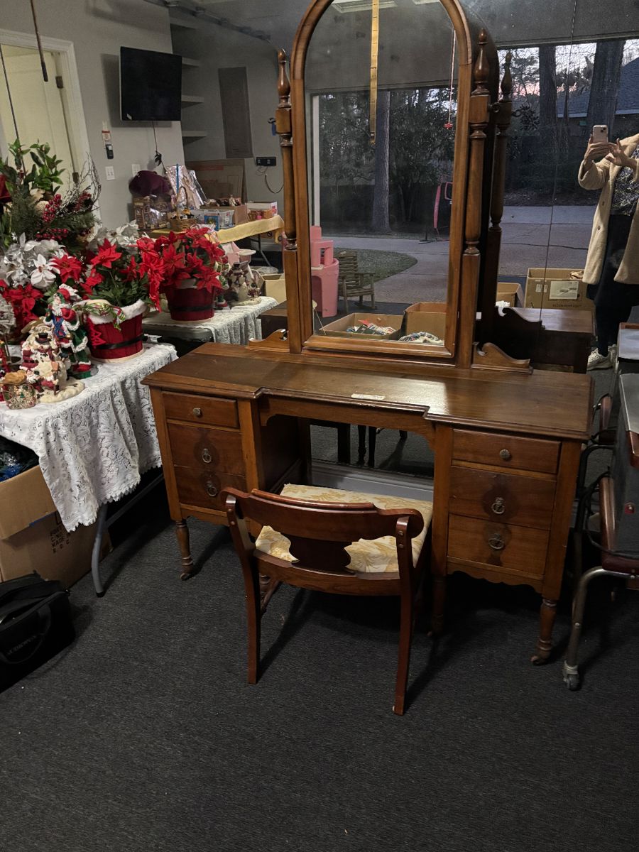 Sale is Saturday, February 22, 8 to 2. Discounting starts at noon. House is sold and remaining contents must be sold. please present a current driver’s license at the guard shack and give address of the sale. Addresses on Evangeline Drive are inconsistent. It’s the last house on Evangeline at the cul-de-sac. Rain or shine. .Antique vanity with stool, 4 vintage Mandeville Seafood festival posters, and autographed Al Hirt poster, clothes, toys, Legos, kitchen, some outdoor, lawn equipment, a massage table, a vintage paraffin machine, bedding and pillows, lamps, miscellaneous furniture, electronics, office furniture, and more.