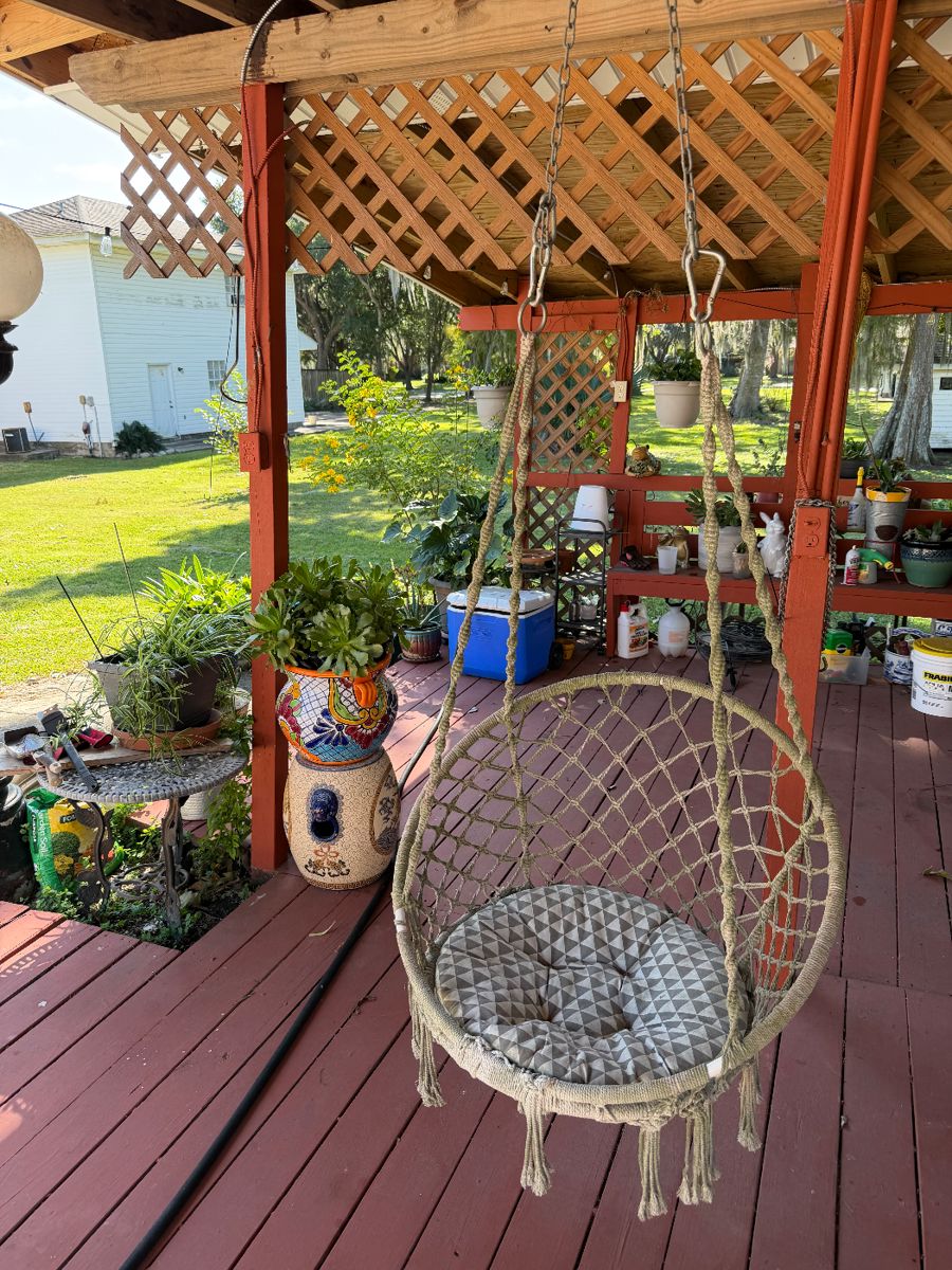 Furniture throughout the home, art, decor, clothes, shoes, purses, kitchenware, patio furniture, plants and beautiful pots, yard art, Disney snow globes and more!