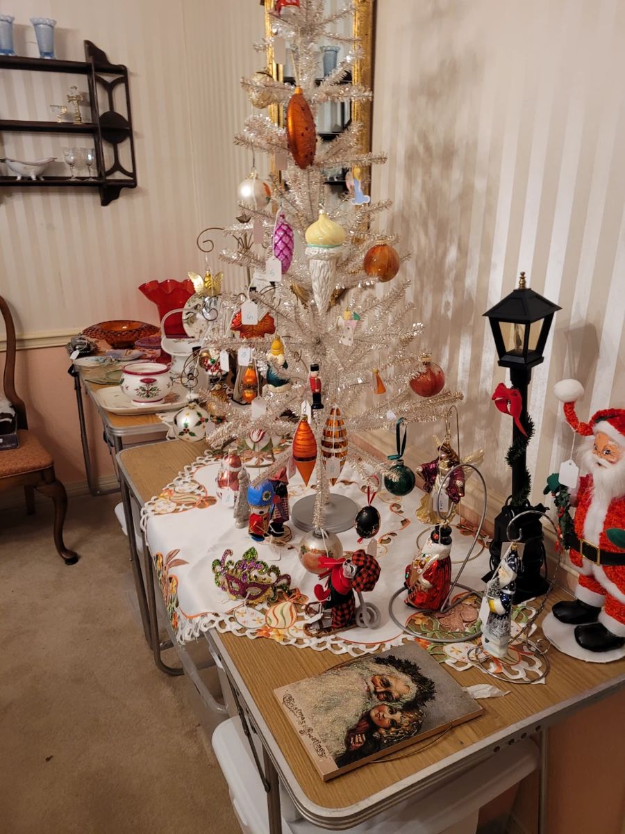 PART 2 LOADED LOTS OF NVWR SEEN MERCHANDISE. ORNAMENTS FROM PART 1 ALL 1/2OFF LOTS OF RADKO ORNAMENTS JUST UNLOADED CHRISTMAS STUFF GALORE, TREES, GARLAND, LIGHTS, GARAGE IS FULL FURNITURE, CHINA CABINET, CURIO, KITCHEN HUTCH AND SERVER TEA CART, WICKER FURNITURE BENTWOOD CHAIRS 4, LOVE SEAT AND CHAIRS, CONSOLE TABLE TV'S, LADIES CLOTHES, SHOES, HATS, PURSES MANY WITH TAGS MINK JACKET LAMPS, MIRROR,, LOTS OF COLLECTIBLE GLASSWARE, KITCHEN FULL COSTUME JEWELRY ANDSTEWRLING SILVER JEWELRY BOOKS, ART WORK BLUE DOG BY RODRIQUE AND JAZZ FEST POSTER SHEET MUSIC AND RECORDS OUTDOOR FURNITURE, CHAIRS, WROUGHT IRON TABLE AMD CHAIRS, 4 BIRD BATHS,...