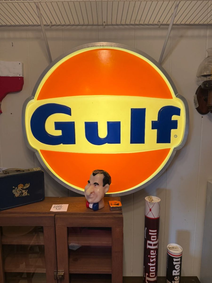 This sale is loaded with oversized advertising from Chanel to Hersheys. We have one oil and gas Gulf sign from the late 70's to early 80's. Joseph Markouits Lucite Geraniums and a set of 2" bakelite backgammon cubes from a deluxe set. Maki-e Laquer card case, vintage cowboy toys, Mola pillows and even a Leg Lamp. Many Brass or Marble lamps to choose from and two sets of fabulous chairs. One is a set of Barrel and the other channel back. Every seen a 7' Keuffer & Essel slide rule? Us either but this weekend you will be able to...
