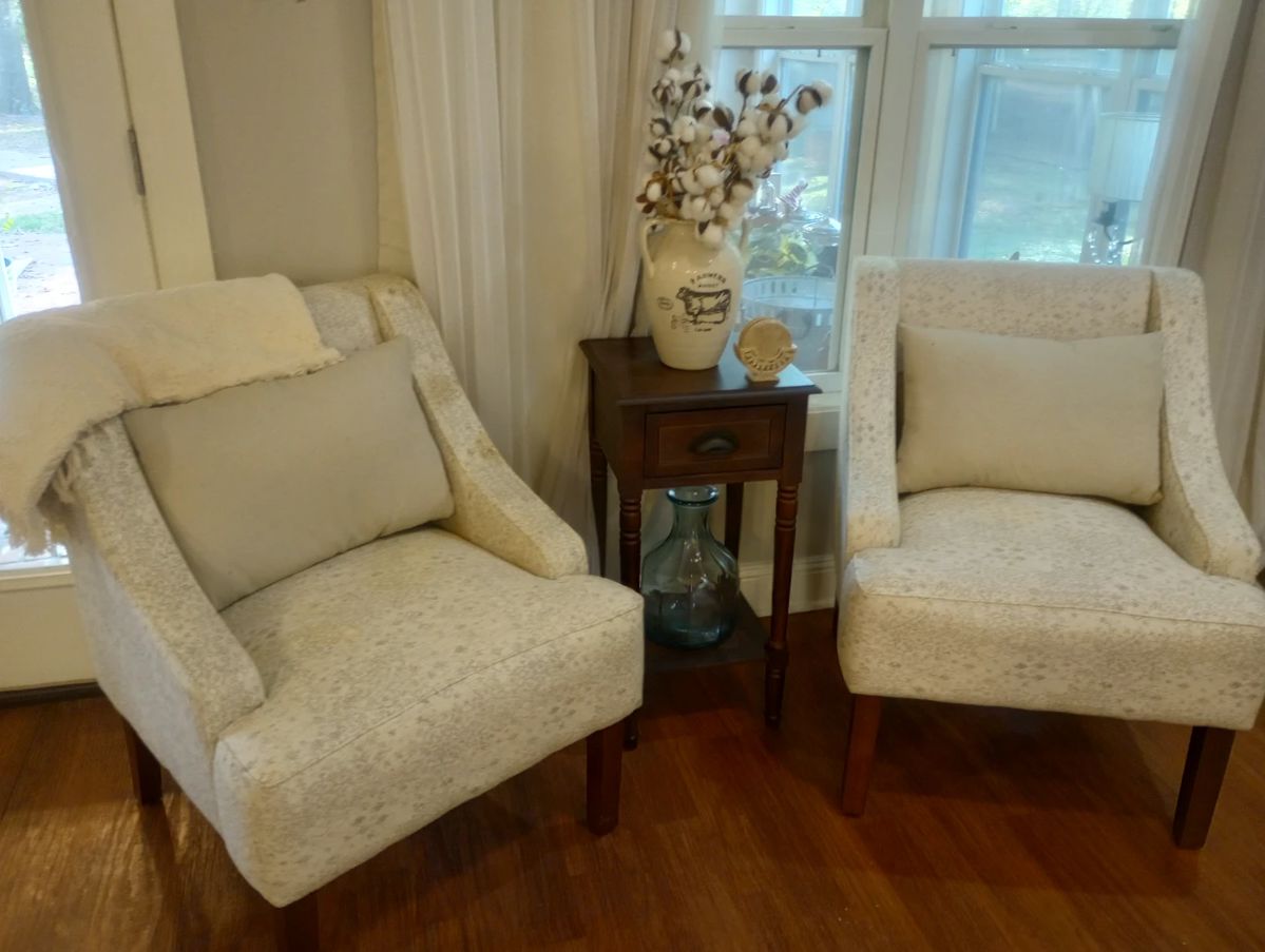 Queen bed, pellet grill, fleur del is rockers and bench, concrete, sectional, chairs, round table 6 chairs, SM and med women's boutique clothes, shoes 7.5 , washer, dryer, dresser, antique wash stand, decor, tvs, much more
