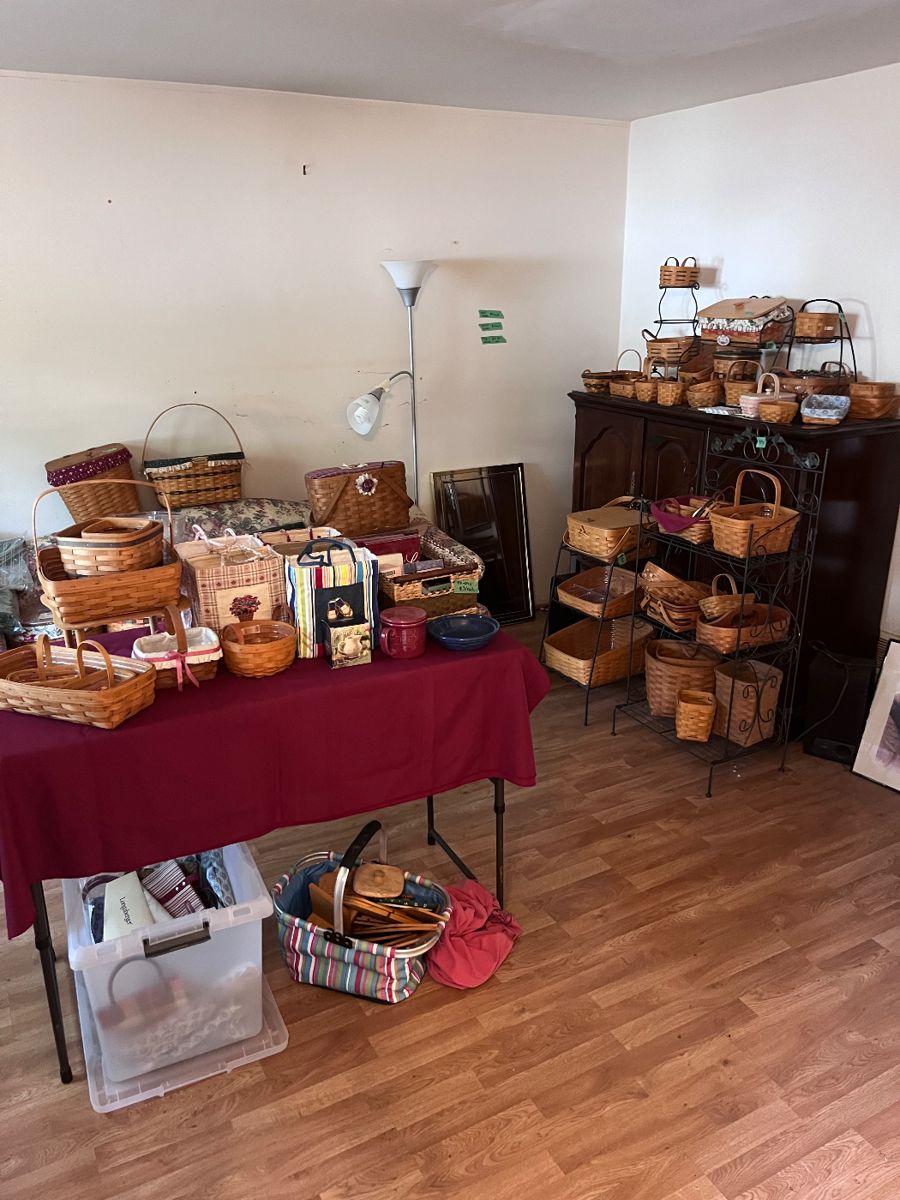 The client has a very extensive collection of Longaberger baskets and accessories. Other interesting items include Gone With the Wind memorabilia, vintage glass items such as Fenton, carnival and uranium, vintage and better brand women’s clothing, and lots of holiday and craft supplies.