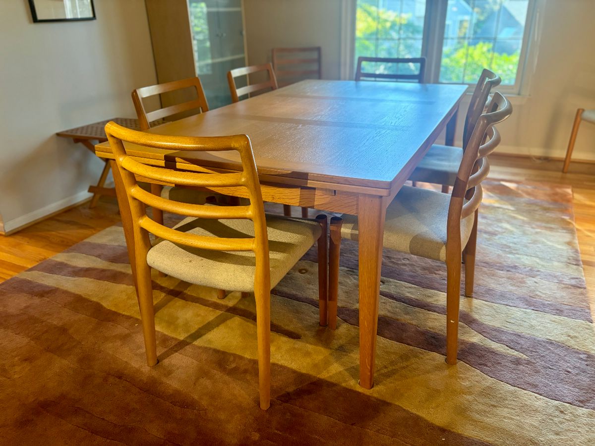 We have beautiful rugs throughout the house, a full kitchen (more pics to come), Pottery Barn, Crate and Barrel, and a beautiful MCM dining room set by J.L. Møllers Møbelfabrik.