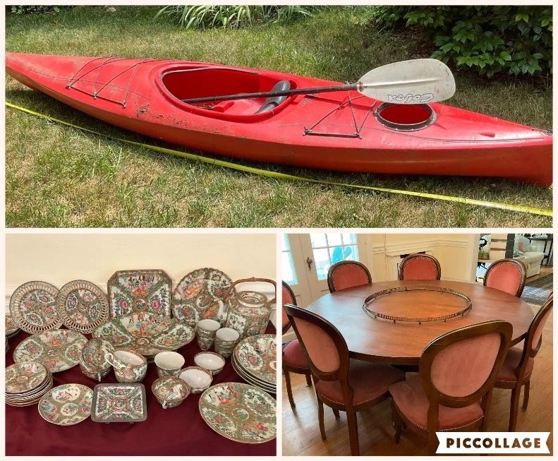 The owner is moving internationally and must leave behind furniture and collectibles of interest. Kayak and sunroom furniture available.