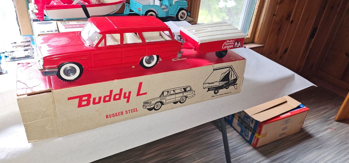 We have found the Southend time capsule. Here is some of what we've found. Vintage head vases 60 of them! Christmas Religious pictures and statues RC planes & engines Cox Tonka & BuddyL trucks some with original box 2 original in the box Cabbage Patch dolls Other Vintage dolls & clothing Board games Other vintage toys Vintage models 1983/84 Hot Wheels unpunched Pyrex mixing bowls & refrigerator pieces A set of vintage flippers and goggles Lawn mower Snowblower Tools Vintage baby walker Blue Canning jars A huge 20 gallon(?) Crocks Tool box and tools