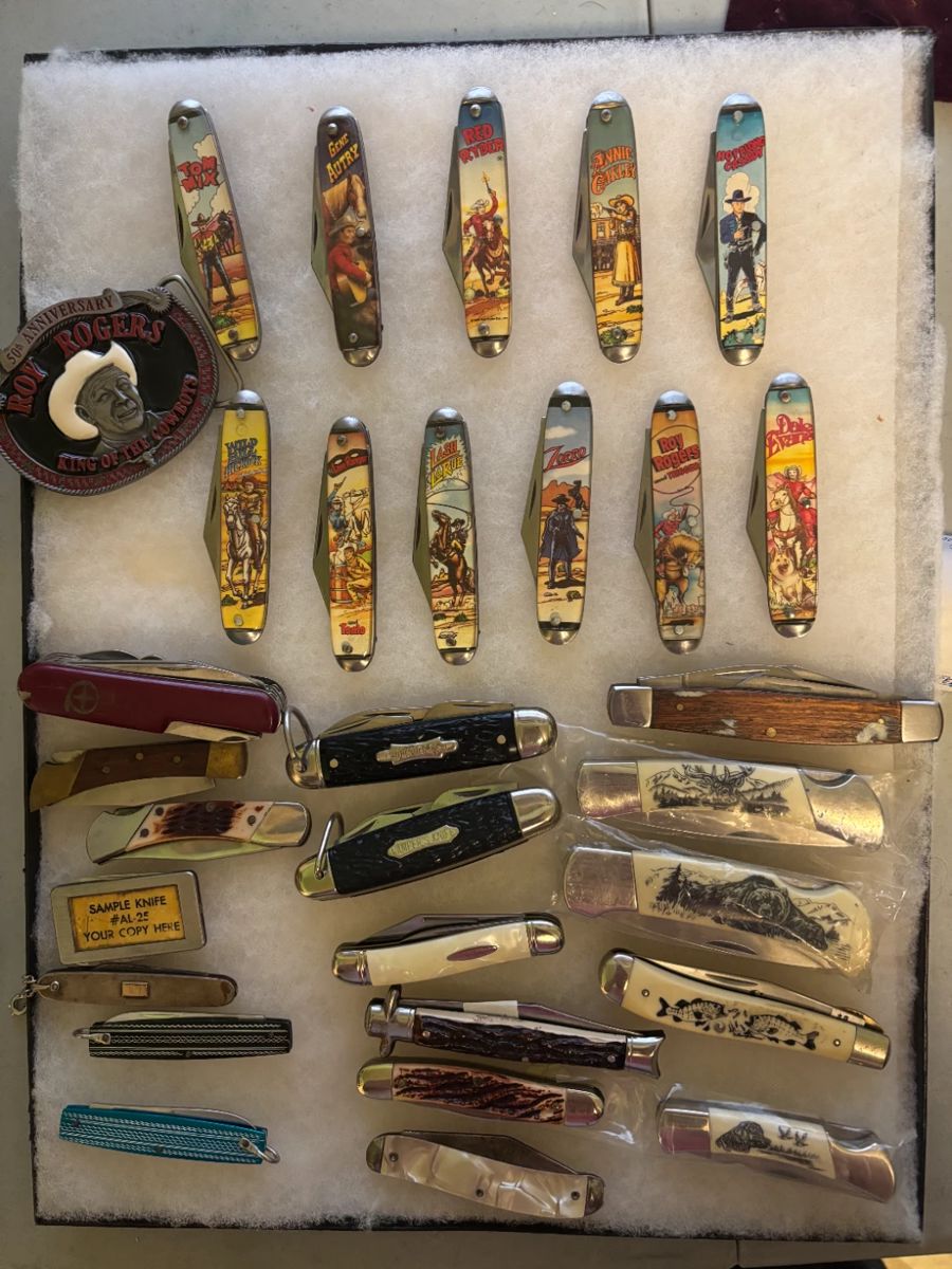 COLLECTIBLES 25+ Pockets knives Swords, hunting knives, bows BB/Cap/starter guns Fishing Poles, reels, baits, box's Owls/Birds Oil Lamps Boys Scout Books and manuals Cookie Jars- talking cop & mamee Tea Pots/Cups & Saucers Cast Iron Pans & Large pot with handle Miniatures/salesman samples Daisy #4 butter churn Pipes & Ashtrays Tins- Circus, Cracker Jack, Hershey's Brass wares & Oriental Oil Lamps 10+ Trunks FURNITURE/DECOR CND Lift & message heated Recliner Oak Corner Curio Cabinet NIB Dining Room Table & Chairs Video/CD Cabinets Vintage dresser set Standing Jewelry Chest Entertainment Centers/cabinets desk wood/metal work benches metal shelf's KITCHENWARES KitchenAid stand mixer...