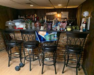 Buy online! Saloom stone top table & chairs, Natuzzi tan sofas, bar stools, patio set -Canton