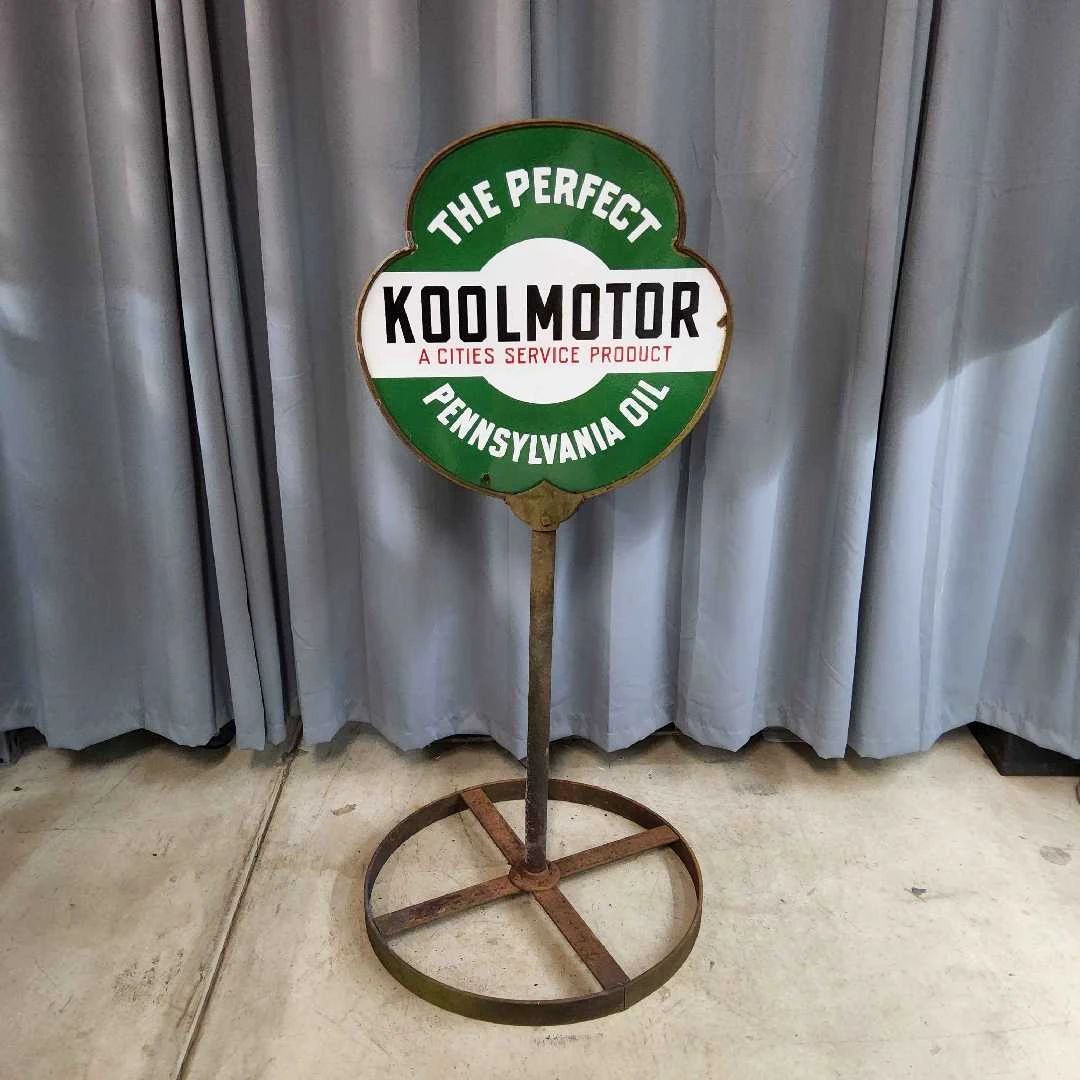 24’ Enclosed Trailer, Koolmotor Petroliana Porcelain 2-sided Lolipop sign, McDough Power Equipment Shriner’s Model T Parade Car, Kennedy 13 drawer tool chest, New Werner multi-fold ladder, Engine stand, cherry picker, chainsaws, Collectables & much more.