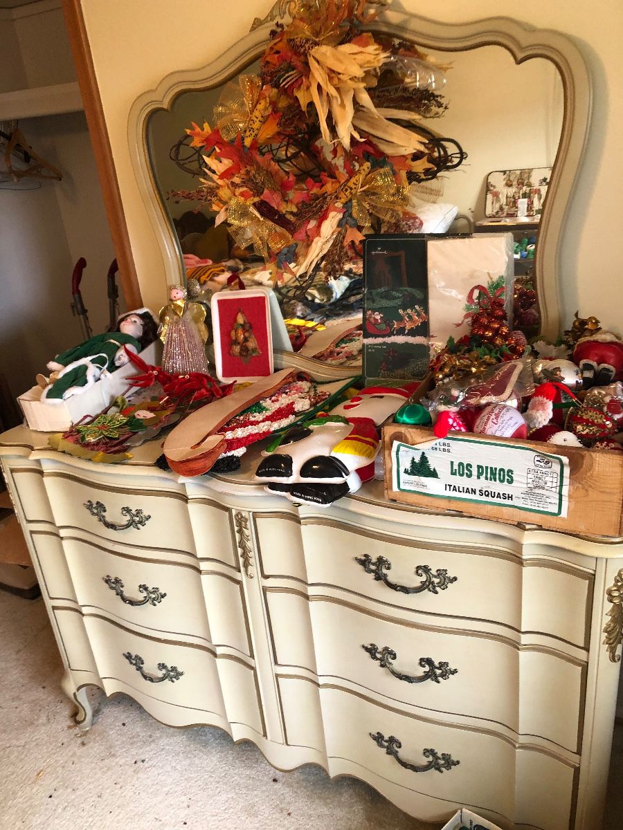 Vintage Christmas, linens, toys, religious, books, vintage clothing, games, kitchenware, cuckoo clocks, typewriters, cameras, and more.
