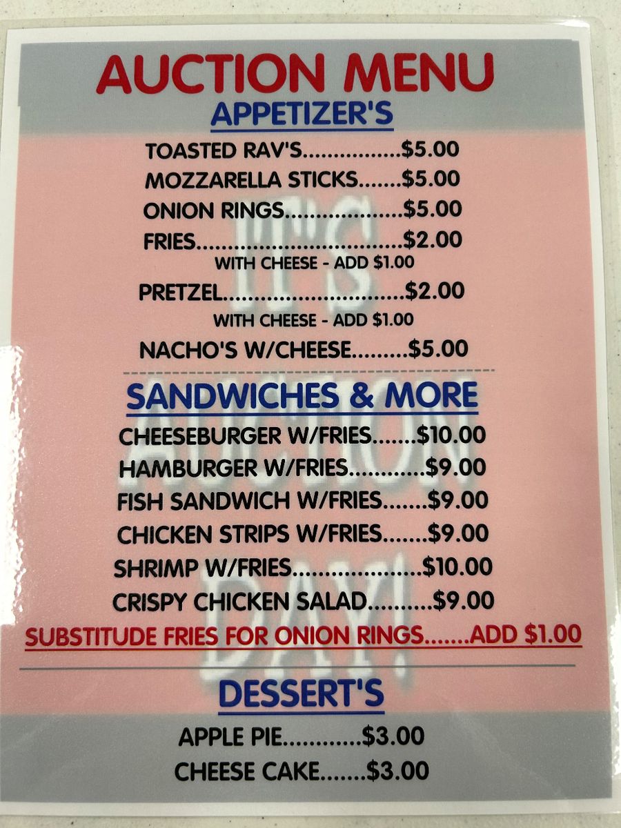 Preview at 4, Auction starts at 5:30. ALWAYS a dinner special. New items available on the menu! Everyone is welcome, ESPECIALLY Dealers! Guns will be offered for auction at 6pm. You must fill out and pass a background check. The Fee for the FFL transfer is $20 per gun. Please do not bid on a gun if you cannot pass the background check. 50/50 Drawing at 7pm. Featured Items of the Auction include: *Fine Collectibles - Coins - including Gold & Carson City, Silver Eagles, Morgan & Peace Dollars, Franklin, Barber, & JFK Halves, Wheat Pennies, Baseball Cards, Hummels, Fenton...
