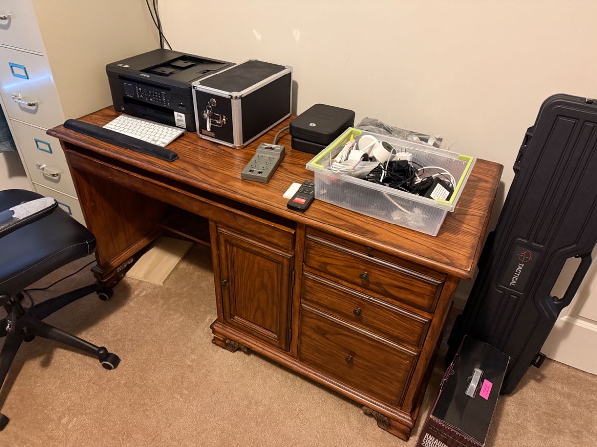 Moving sale. Items in include split king size bed, wooden furniture, electronics.