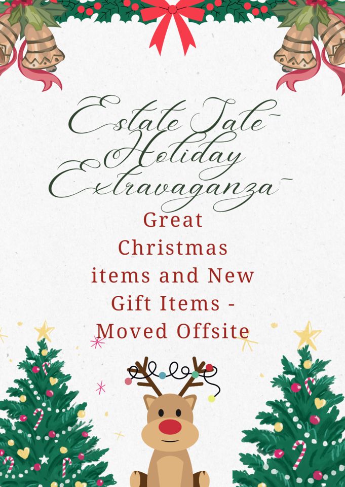Estate Sale - Holiday Extravaganza -Christmas Items, Dept 56 and New Gift Items - Moved Offsite