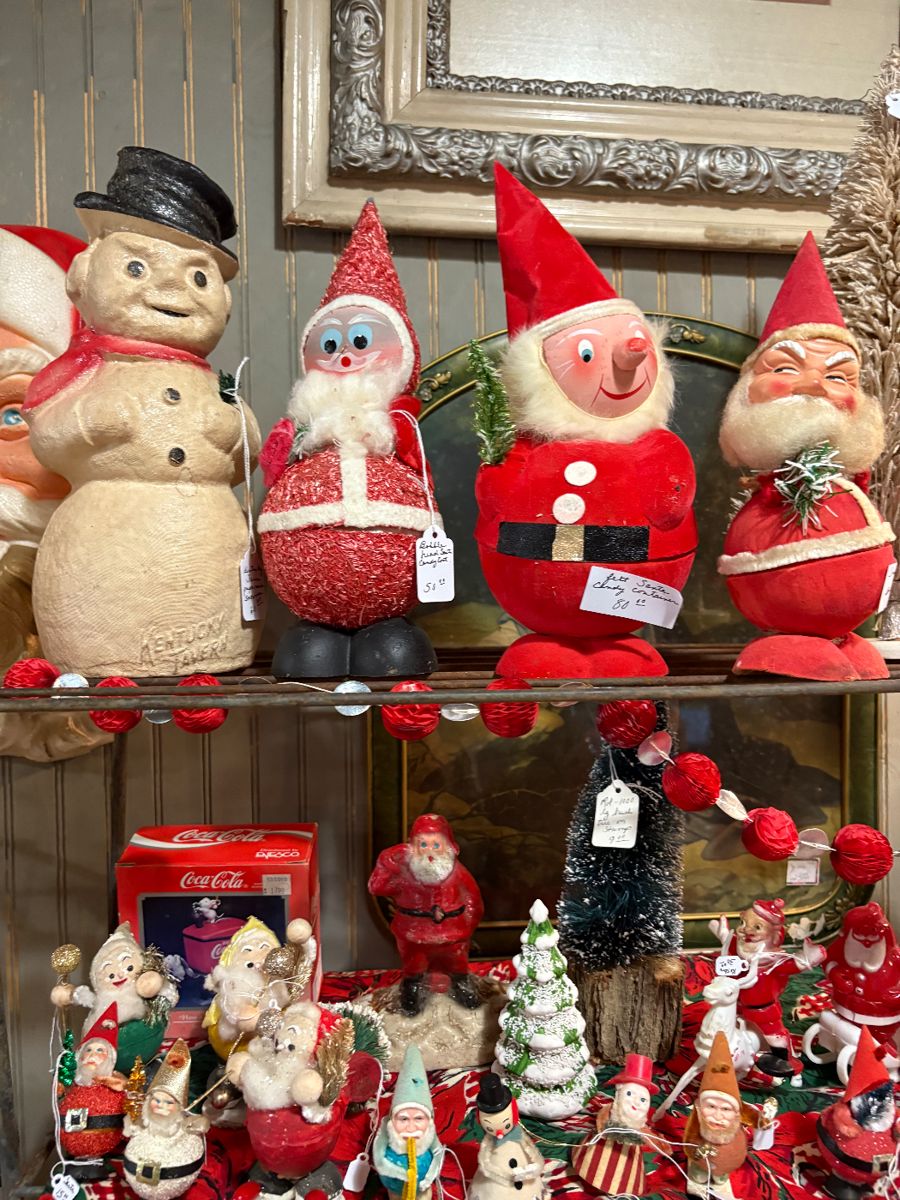 I have added lots of new stuff, including most all of my own collection of antique Christmas. Sleds, wicker sleighs, wagons, ice skates. Victorian tables, parlor stands. Victorian ladies, animals, children and some winter scene pictures. Lots of Parrish prints. Primitives, wood ladders, bird cages. Wood vanity and desk with chairs. Fenton, fostoria, German misc dishes. Mcm Modern lamps, heywood wakefield sewing chest, cedar chest, tons of sewing trims, tons of newly added linens & doily’s. Lots of miscellaneous not listed. EVERYTHING 20% off including 30% off Halloween and 50% off several tables full od old stock and miscellaneous.