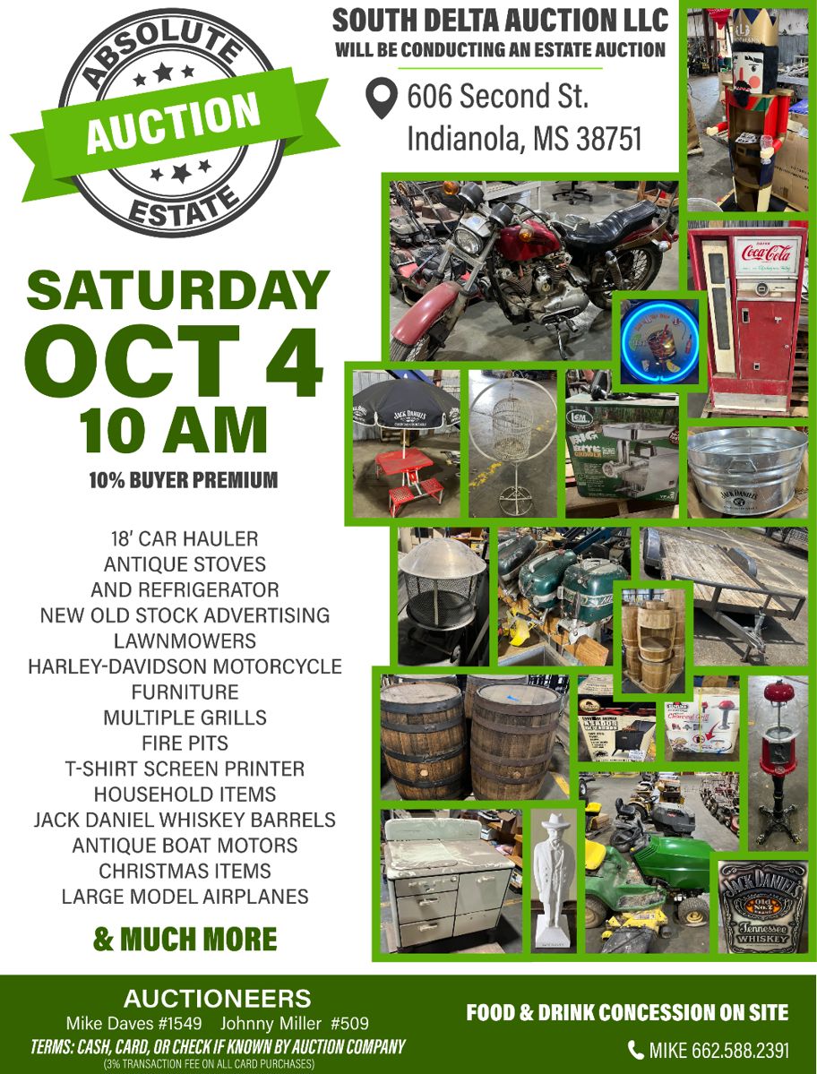 Huge in person absolute estate auction on October 4, 2025. Doors open at 8am and the sale starts at 10am.