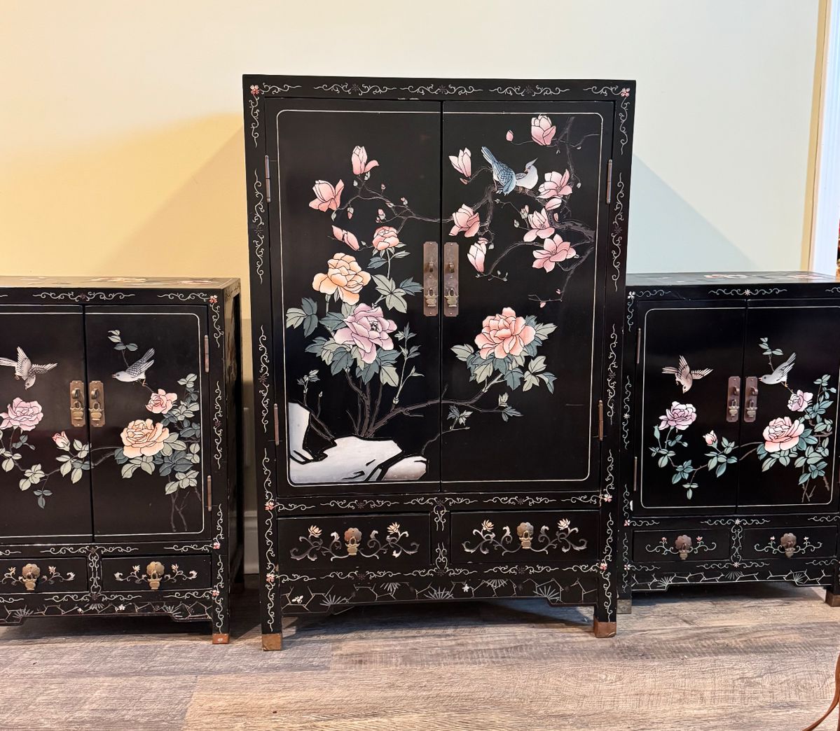 Home with vintage beauty salon equipment. Large costume jewelry collection Perfumes Mid Century decor items Women’s clothing (small/medium) Handbags Large Doll House collection Hummel figurines Japanese dishes and collectibles Catawba Indian Pottery Precious Moments Black Lacquer furniture Refrigerator Washer & Dryer Salon hair dryers with chairs Hair color and perms Kitchen items Dining table with cane back chairs Floor vases Planters Holiday items Many more details and pictures will be added during set up