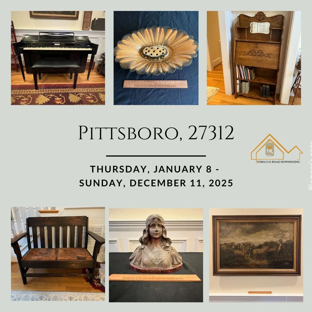 UPDATED 1.6.26 @ 4:30 THURSDAY APPOINTMENTS ARE FULL. FRIDAY WE HAVE ADDED ANOTHER HOUR AND HAVE A FEW 12PM APPOINTMENTS LEFT SATURDAY WE STILL HAVE OPENINGS 9-2 New Year, New Timeless Treasures. Available to YOU in Pittsboro! Art Nouveau, Antiques, Jewelry & MORE! Available to Claim Now! 919.213.1311 Our first sale of 2026! This beautiful Pittsboro home is getting ready to hit the market! Owners are moving North to be with family and already have a fully furnished there! Lots of beautiful art and decor, books, furniture, garage items and more! As always - this sale is by appointment only....