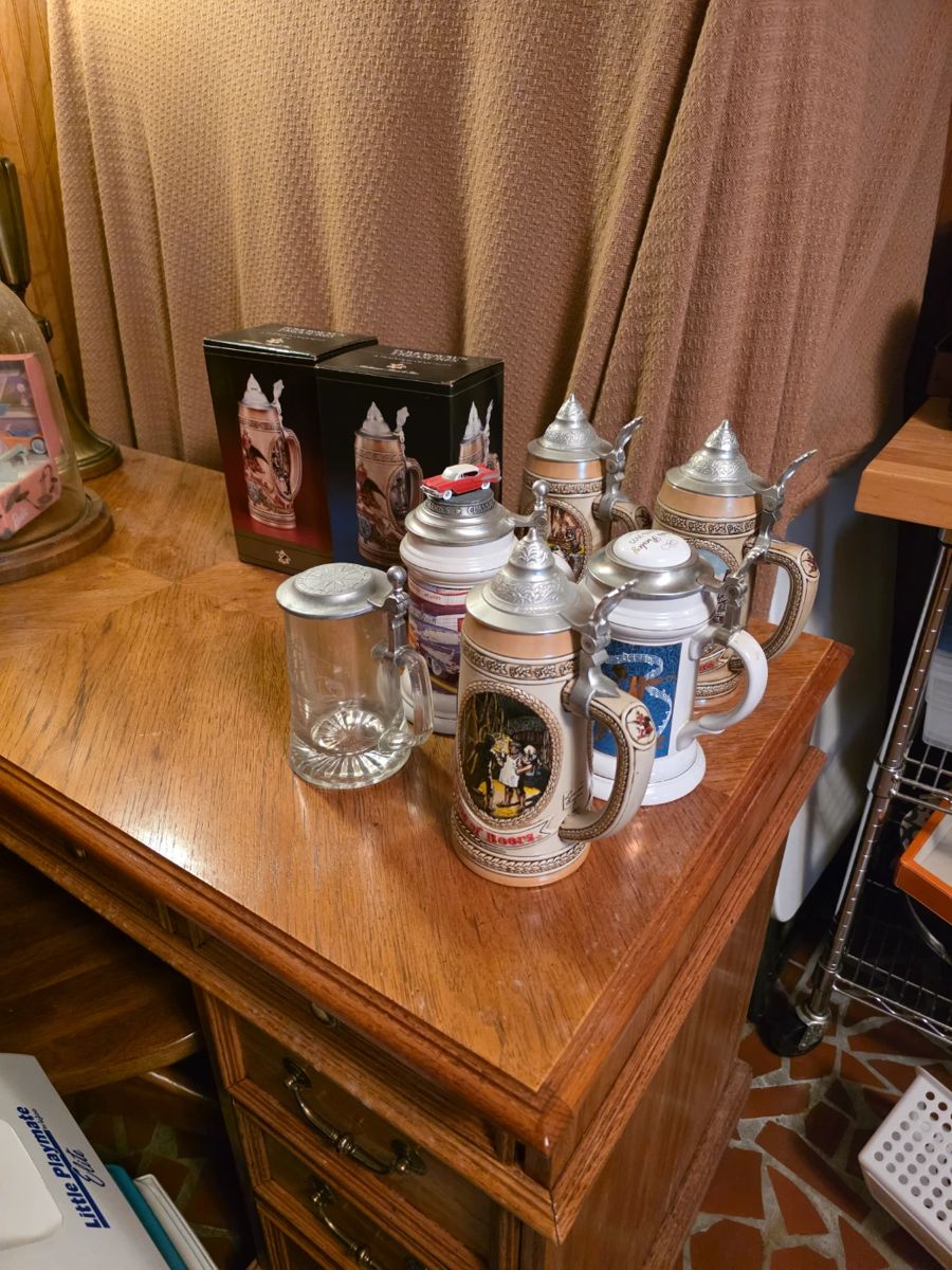 This sale has some beautiful pieces!!  Craftique bedroom set, american drew set, fenton, milk glass,  red noritake and other red pieces, fostoria Americana.  Jim shore pieces most with boxes, barbie doll collection   1 room full of different brands of dolls, revere ware pots, tupperware,  phaltzgraff Christmas,  johnson bros china.  Several curio cabinets.  Garage items.  Longaberger baskets and more Jim shore in garage. Broyhill leather sofa and chair