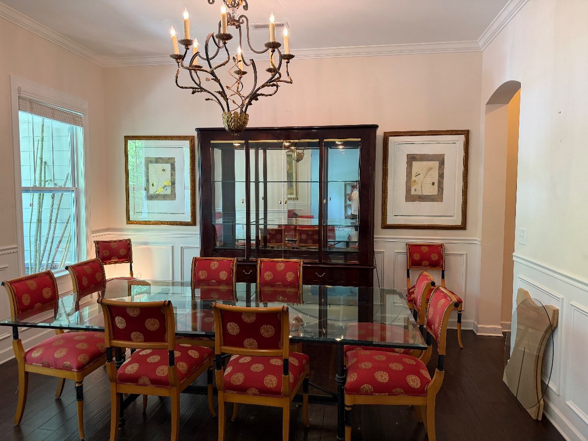 We have a house full of wonderful items, including a gorgeous lighted china cabinet by Bernhardt, a pool table, Waterford stemware, art, and a great selection of holiday decorations.