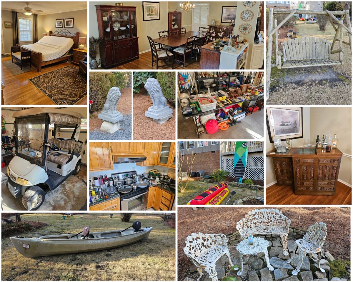 . Sleeper sofa, Armchairs, Rugs, Living room furniture, TVs, Accent chairs, Wicker furniture, End tables, Side tables, Motorized chair, Duck decor and duck decoys, Fish decor, Bamboo table, Recliners, Sofas, Coffee tables, Lamps and floor lamps, Art and nautical decor, Books and prints, Crocs, Metal eagle sculpture, Nutcrackers, Children’s books, Glassware, Collectibles and figurines, Ceramics, Dining room furniture, Large dining room table, China cabinet, hutch, buffet, and sideboard, China and crystal, Carnival glass, Hummel figurines, Seashells, Mirrors, Eastlake furniture with marble tops, Oil lamp, Walking canes, Wine rack, Silverware, Decanters and barware, Antique furniture, Bar, Adjustable Tempur-Pedic bed, Rocking recliner,...