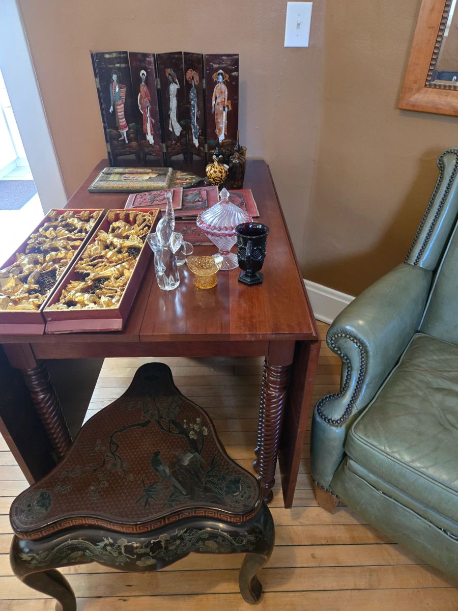 Antiques, artifacts, art, household items, and furniture from personal and Airbnb collection.