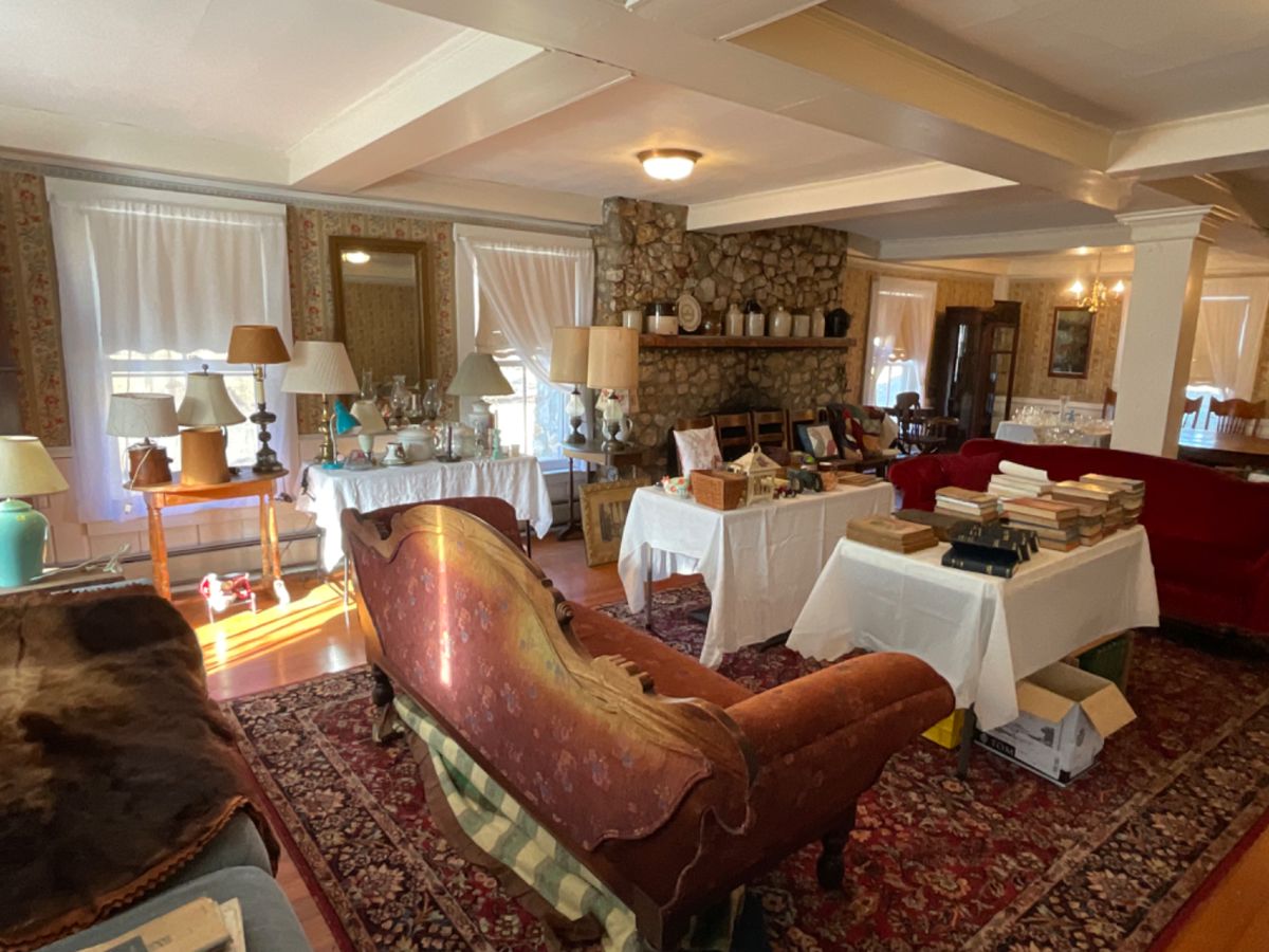 Estate Sale in an Old Farmhouse! Lots of Vintage and Antique items for sale, some dating from the 1800’s. Items include Velvet Sofa’s (one with a matching armchair), Tables (full size and lots of side tables), Wooden Wardrobe Cabinets, Books (Bible’s, Hemingway, Encyclopedia’s, Dictionary’s, Children’s), Victrola with Records, Miscellaneous Decor, Crystal Glassware, Collectable Dish ware, Bed Frames, Dressers with Mirrors, Basic Bureau’s, Desks (tall Secretary desk, Roll Top desk, Wooden Personal desk), Trunks, Lamps, Kitchenware, Paintings/pictures, Old Photographs, Suitcases, Music Books, Garden/outdoor Tools, Coolers, Washer & Dryer, Row Machine, TV’s, VCR, Magazines, and a Variety of Chairs, including Rocking Chairs!...