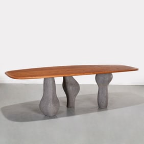 Offering a strong collection of Mid-Century and European Modernist furniture, lighting, and design. Highlights include a Larsen & Bender "Metropolitan" chair, a Tommy Parzinger bar cabinet, a custom T.H. Robsjohn-Gibbings dining table, and designs by Hans Wegner, Paul Frankl, Gilbert Rohde, and George Nakashima. Lighting selections feature a Barovier & Toso dome chandelier, a Leon Hugue Art Deco chandelier, Vignelli travertine torchieres, Stilnovo sconces, and monumental cobalt Murano chandeliers. Modern and contemporary art highlights include prints by David Hockney, Frank Gehry, and Marc Chagall; works on paper by Louise Nevelson and Linder Sterling; sculptures by Tom Otterness and Daisy Youngblood; and paintings by Theophilus Brown, Rafael Coronel, and Georgi Moiseevich Moroz. Photography is led by mural-sized works by Ahmet Ertug. The day also includes fashion and travel accessories from the personal collection of Sir Elton John, including Louis Vuitton luggage and designer clothing by Hermès and Versace.