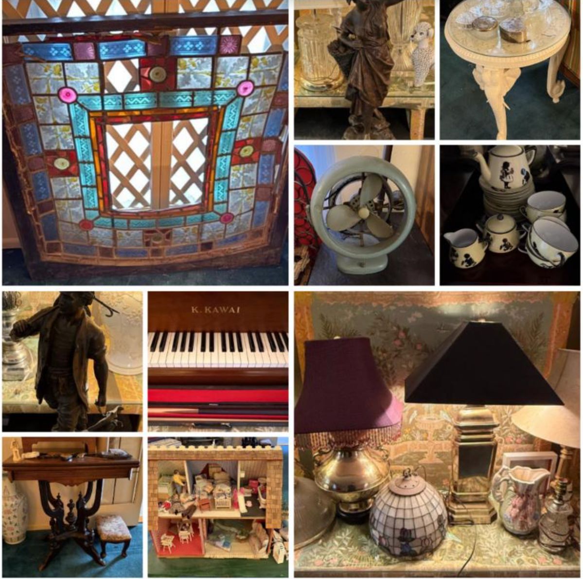 Step into a charming Cherry Hill home filled with unique vintage pieces, antique décor, musical treasures, art, and whimsical collectibles. This sale is perfect for decorators, collectors, resellers, musicians, and anyone who appreciates character and craftsmanship. ✅ Featured Items from the Estate 🎹 Musical Instruments K. Kawai piano Vintage guitars 🎨 Artwork & Statues Large ornate stained-glass window panel Multiple bronze-style sculptures including a fisherman figure and a woman carrying baskets Framed wall art & décor 🏺 Antique & Vintage Furniture Intricately carved Victorian parlor or sewing table with decorative base Elephant-carved glass-top table — highly detailed and unusual Decorative...