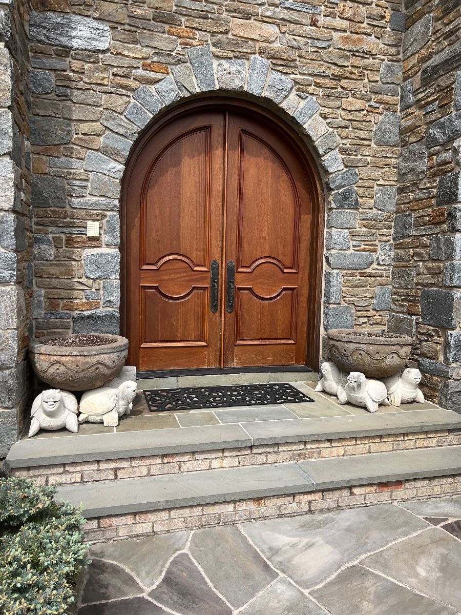 Swarovski large crystal chandeliers, antique salmon colored crystal chandelier, Large crystal chandelier with gold tone accents, Queen size bed frame wood with leather believed to be Ralph Lauren, Multi color and silk fabric French style loveseat, Beautiful custom silk curtains, with gold tones, 138 inches in width & 104 inches in length, Another silk custom-made curtains, 124 inches and width and 108 inches in length all hardware is included with the curtains, Eggplant colored silk fabric pair of arm chairs, Too large size clay vases with design from Bally, Two large planters with turtles at the base, Large painting of...