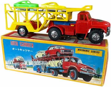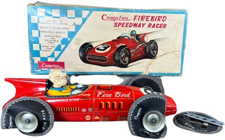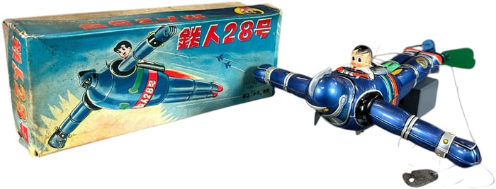 Japanese automotive toys from the Bernstein Collection, robots and space toys, German wind-ups and automotive toys, pressed steel trucks, Popeye & comic character toys, cap pistols and more.