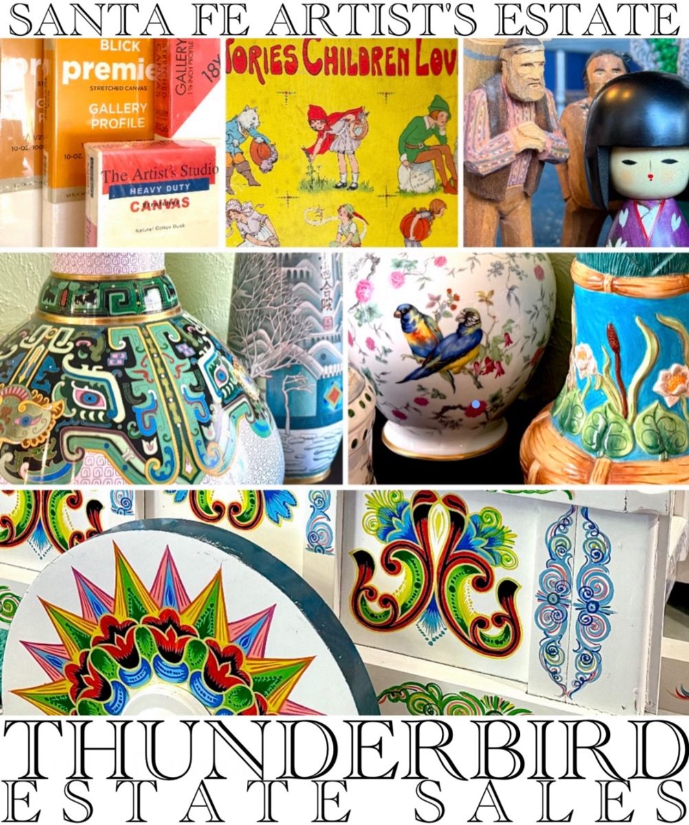 🎉 SANTA FE PACKED ESTATE SALE – A WORLDLY TREASURE TROVE! 🎉 This is the gift that keeps on giving! Every corner, every box is overflowing with surprises from around the globe. 🧳 Featuring: Asian & European Antiques, EPIC Chinese Cloisonné Vases, Japanese Kimonos & Porcelains, Rare China & Decorative Pieces, Religious Items including Christian Science & Antique Bibles, Books on Art, History, Education, and Artists (O’Keeffe, New Mexico, more!), Art Prints, Original Art, Carvings, and Canvases, Paints, Brushes, Easels, & Art Supplies Galore, Toys, Dolls, & Seasonal Decor, Political & Military Memorabilia, Women’s Clothing, Themed Bins of Vintage PlayMobil...