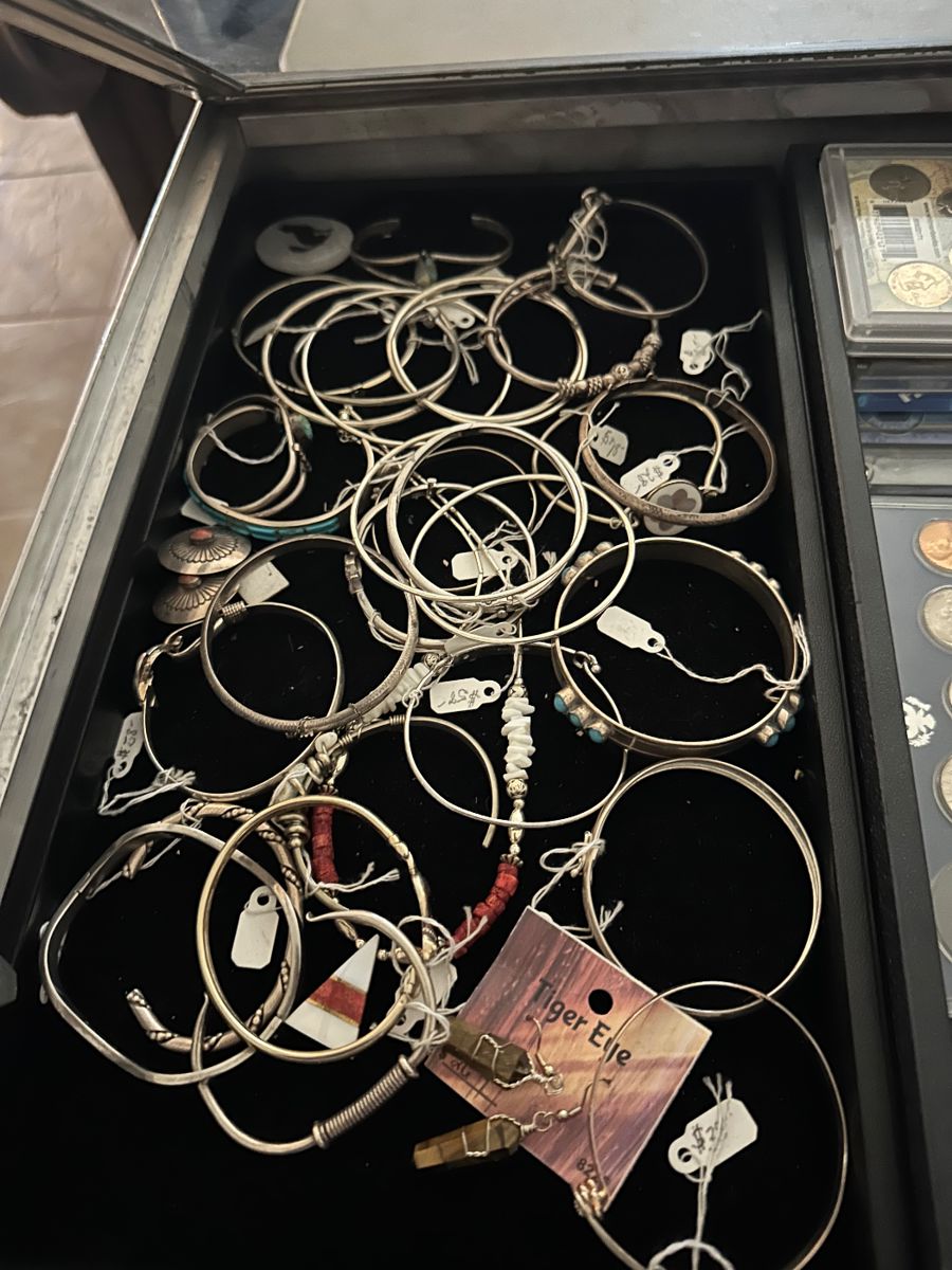 Dressers mattress, and box springs, Stereo Equipment pots and pans, dishes, household items, blankets, quilts towels, jewelry, office, desk, loveseat, automatic, lift chair, Eastlake, kitchen, table, tools, art, Native American, items, coins, ladders, sewing machines, laptop,model, cars also wooden models clothing, and much much more TV’s sewing machines, Christmas, ornaments, and wooden cut out Christmas Santa Claus large lot of silver dollars and half dollars from 1800s to the 1900s