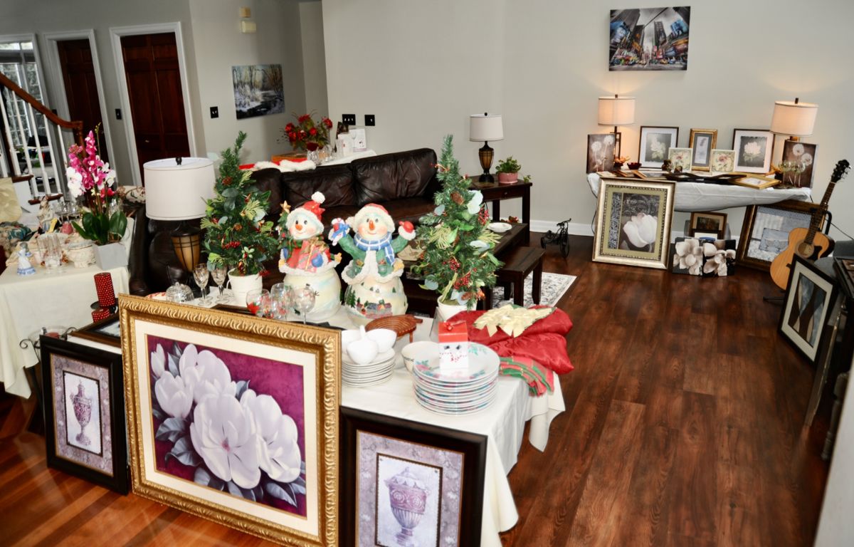 Our client is downsizing and selling many of her possessions. Leather sectional sofa, upholstered chairs, mahogany dining room pieces, office desk and book shelves, decorative furnishings and home decor, artwork, holiday, crystal, guitar, electronics, quality infant and toddler items, tools, kitchenware, clothing and more.