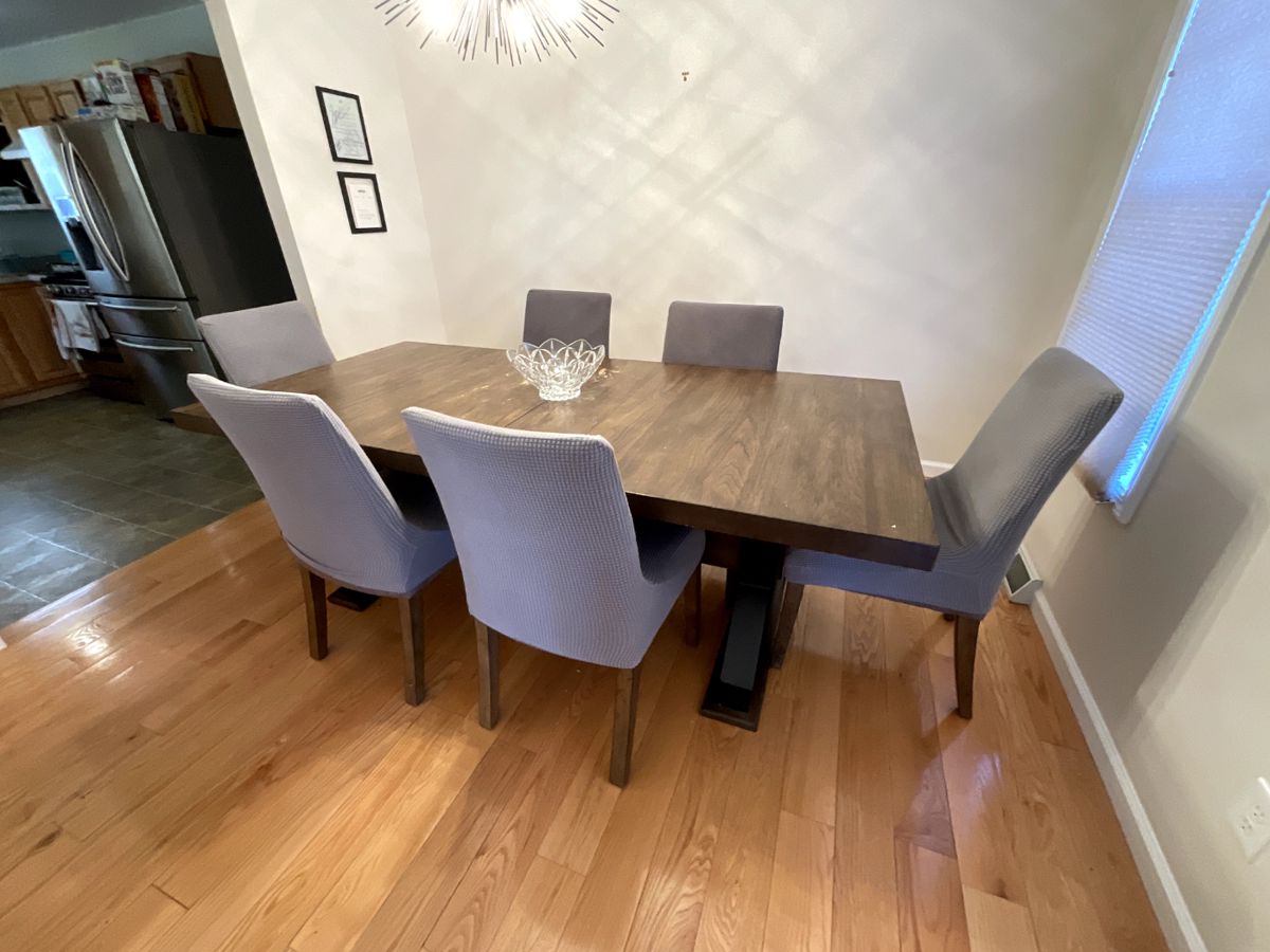 HIGHLIGHTS: Furniture: - King sized bed with sliding barn door cabinet headboard - Great Veca dining room table with six chairs - Grey Jofran armchairs w/ ottoman - Metal coat/umbrella rack - Black metal frame queen bed - Green velvet chaise lounge - Graco high chair - Brown faux leather reclining sofa - Folding patio lounger - Metal patio table set - Matching dark wood dresser and chest of drawers - Pair of matching bookshelves Decor: - Industrial style table lamp - New Orleans kitchen wall art - Honeywells Bourbon bar clock - Beetlejuice miniature marquee sign - Whiskey varieties...