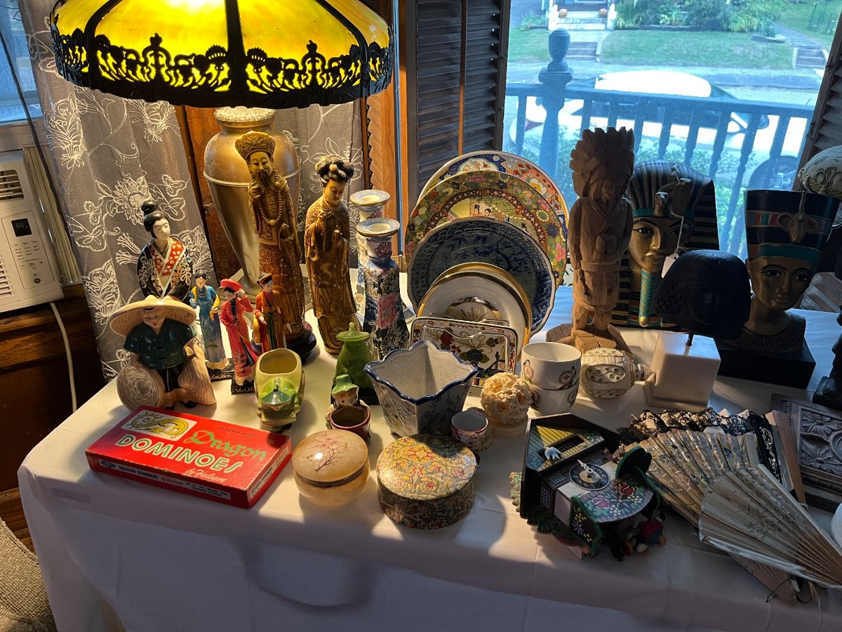 Contents of the home include: furniture, several curio cabinets, antique butcher block, Asian collectibles, Delft collection, artwork, large collection of silver souvenir spoons, cut glass, sterling silver jewelry, many smalls, Murano glass, Depresdion ware, Hummels, Fenton shoe collection, German beer steins, household, large collection of holiday decorations - Christmas, Easter, Halloween, large amount of crafting items, indoor/outdoor furniture, clothing, electric fireplace, tools and much more.