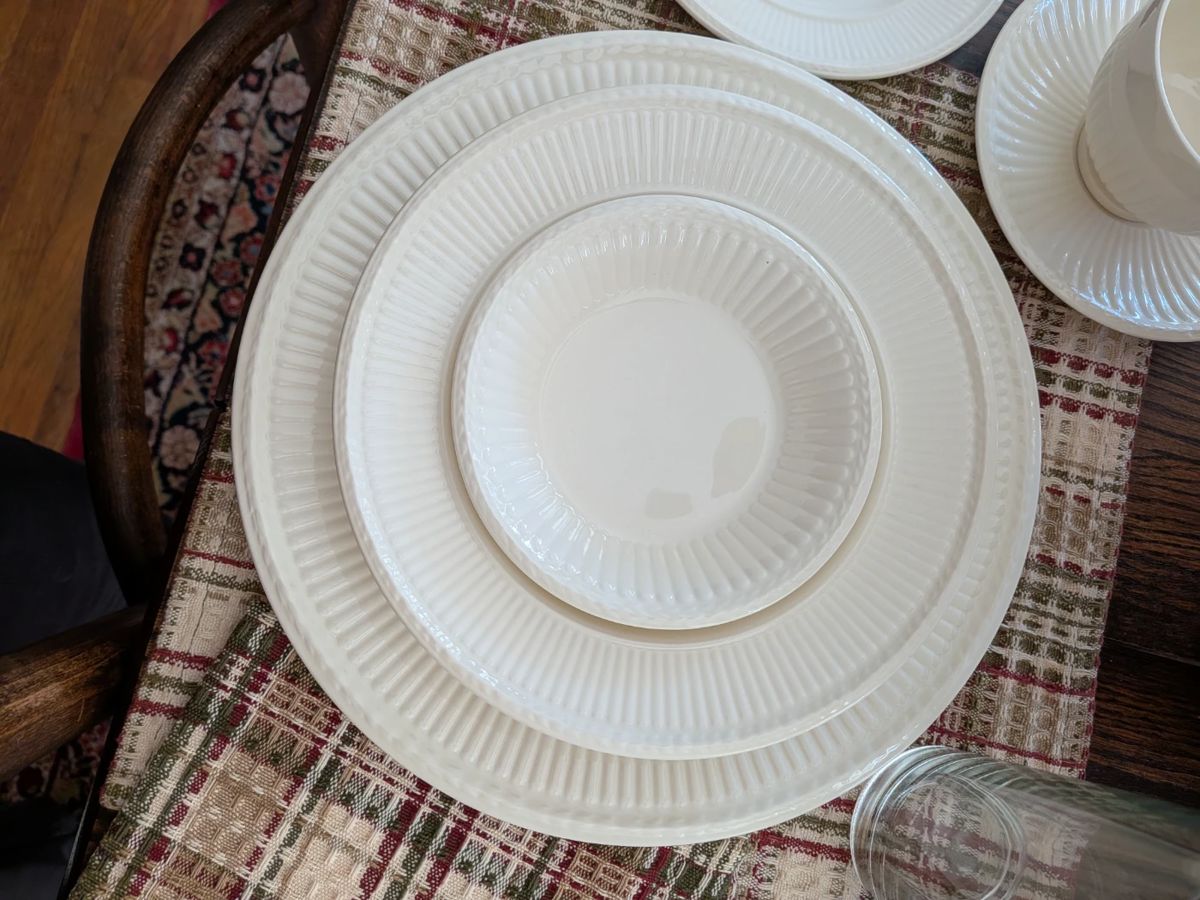 Lovely home of older man moving to assisted living. Exquisite items. Kitchen items. Lots of actual Tupperware as late wife was a dealer. Dishes, glasses, silverware, pots and pans, baking sheets Beautiful set of ivory Wedgewood dishes, crystal, Vintage Astra table and Bentwood chairs. Gorgeous vintage Persian rugs in every room. Native American statuary and baskets Matching couch and loveseat. Adirondack coffee table.plant stands, lamps, artwork, crocks, rocking chair, Chippendale secretary, German Beer Steins including German Porcelain "Sad Radish" in excellent condition, 1930 poseable Mickey Mouse.metal soldiers, books French leather top desk, book shelves, suitcases, sleeping bags, pillows, massage table,...