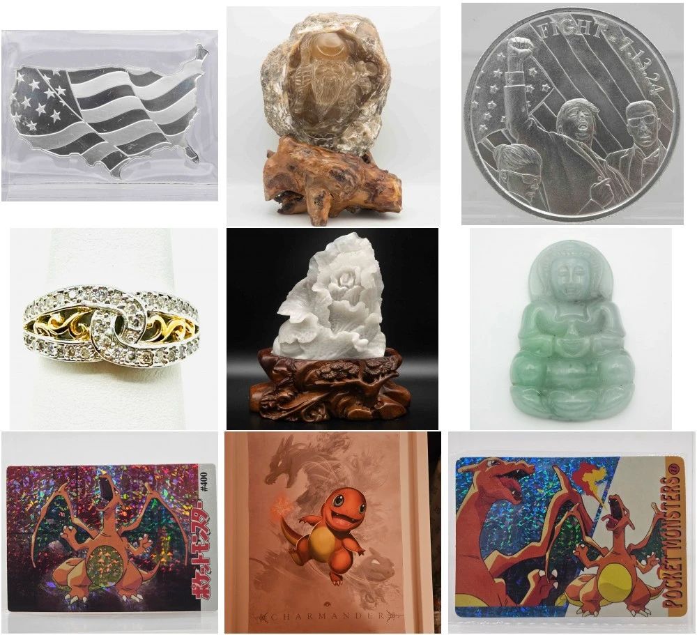 FINE JEWELRY, JADE, SILVER, NUMISMATICS, CHINESE ANTIQUES, POKEMON CARDS, POSTERS & MORE!!! MULTI ES