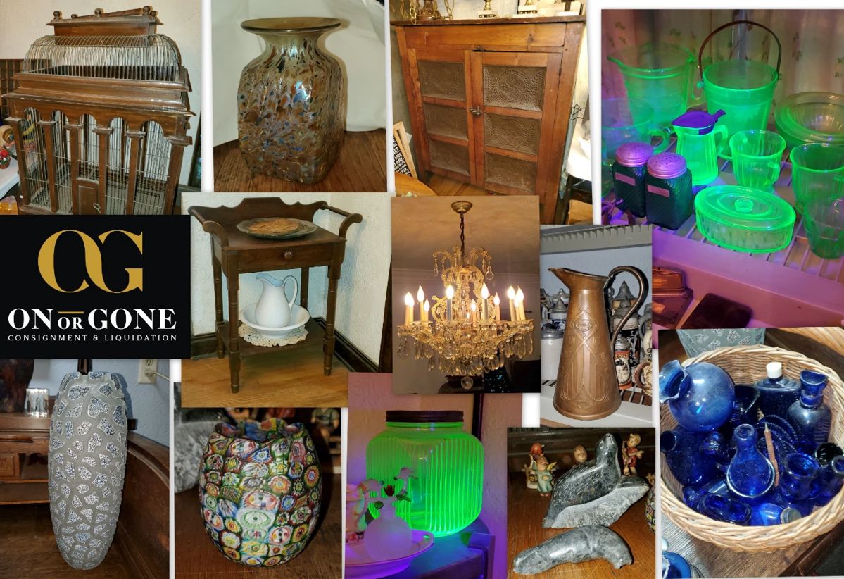 We still have many items to discover & discount. This vintage 1920's brick & stone home has been a treasure trove of variety and era's. Continuing to reveal corners & closets of merchandise, this sale will include: Antiques, collectibles, Oscoda Canoe, wood chicken crates, oak roll top desk, antique washstand, small antique wood carpenters workbench, glass shelf tea cart, antique oak china cabinet, Hitchcock style rocker/high chair/stand, 3 ball & claw piano stools, brass bed, jenny lind bed, Uranium glass pieces, art glass, Kosta, contemporary glass & art, depression glass, paperweights, corelle, millefiori vase, small Loetz type glass vase, cobalt...
