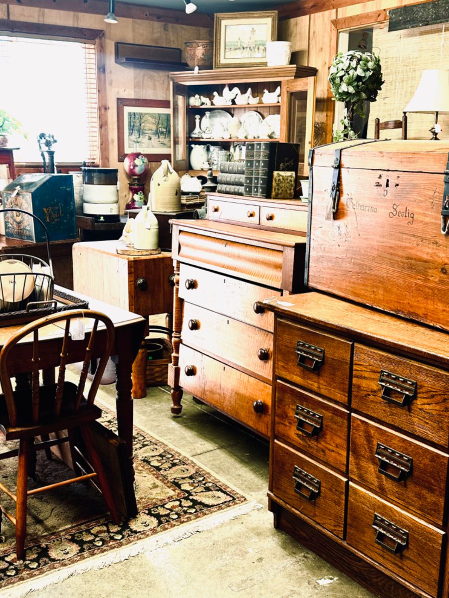 It's a LOT!!! Many many estates - some small - some large.......but all interesting! All for you! we have.. Mid-Century Area including Knoll, Eames, furniture, lamps, and accessories, Gentleman's Library secretaries, cedar chest, school master's desk, vintage wool blankets, Lamps, Fishing and sports, Empire table, Ranch Oak cupboards, desk and beds, art!!, Boutique vintage clothing and furs, hats, shoes, cottage painted bedroom suite, art, Modern Lighted display cabinet, White cabinets, art glass galore, ethnic clothing, art!!!, items for entertaining, Asian inspired room Upholstered sofa and chair, large Asian cabinet, black display cabinet, Japanese sleeping portch, Kitchen table and chairs, art!!!,...