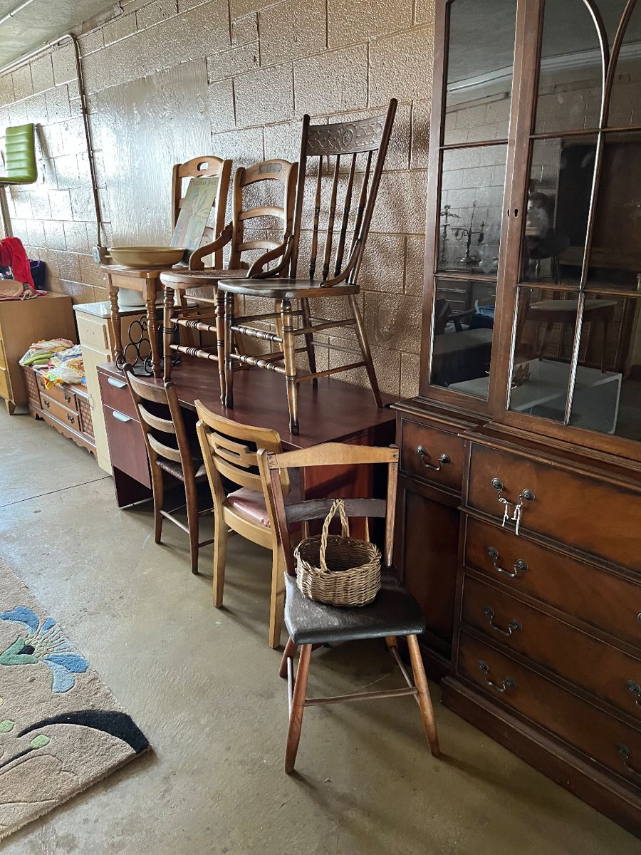 Lots of antiques and collectible furniture, Mcm, glassware, garden items, toys, jewelry, books, records, power and hand tools, bookcases, sofas, chairs, kitchenware, metalware, brass, vintage clothing and accessories, x-mas, craft items and supplies, way too much to mention