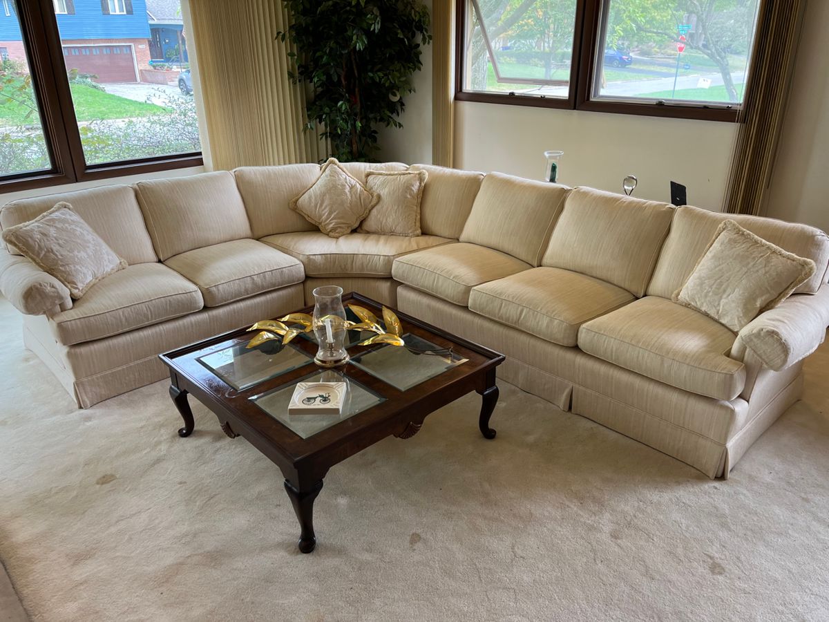 A fabulous Estate Sale in Upper Arlington in a great MidMod house this weekend with some amazing Mod Lane burled wood furniture, Mancave beer signs and beer collectibles, numerous appliances / refrigerators, a Husvarna riding mower, Nautalus exercise equipment, and so much more!! Nice neighborhood. Easy parking! Looking forward to seeing you all Friday and Saturday!! Furniture / Rugs / Decor A large L-shaped white sectional sofa by Fashion House Furniture Glass top square coffee table Chippendale style console table Chippendale style highly carved entertainment center Shaped carved console table/ entry table Glass top dining table with Chippendale style chairs...