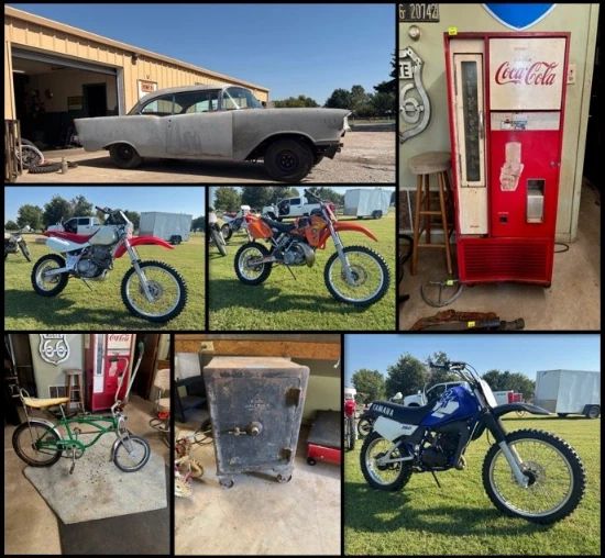 Robert Farrington is downsizing his collection and moving. Up for auction is a 1957 Chevrolet Belair 2 door hardtop coupe with a 427 big block,1952 Chevrolet, Schwinn Stingray, Honda XR600R, XR100R, KTM 2 stroke, Polaris 2stroke 4x4 4wheeler, and Yamaha RT180 along with a lifetime collection of car parts and tools. For more information please call Nathan Barta at 405.630.9889 or Cody Smith at 405.365.9063. Preview Day: Monday, October 20th from 4pm to 6pm. Auction begins closing Tuesday, October 21st at 9am. Credit Card payment will include processing fees. If you would like to pay cash or check, you will...