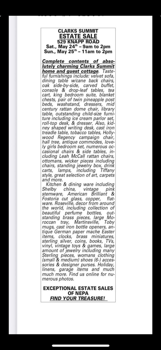 The address for this sale in Clarks Summit, PA 18411 will no longer be shown since it has already ended.