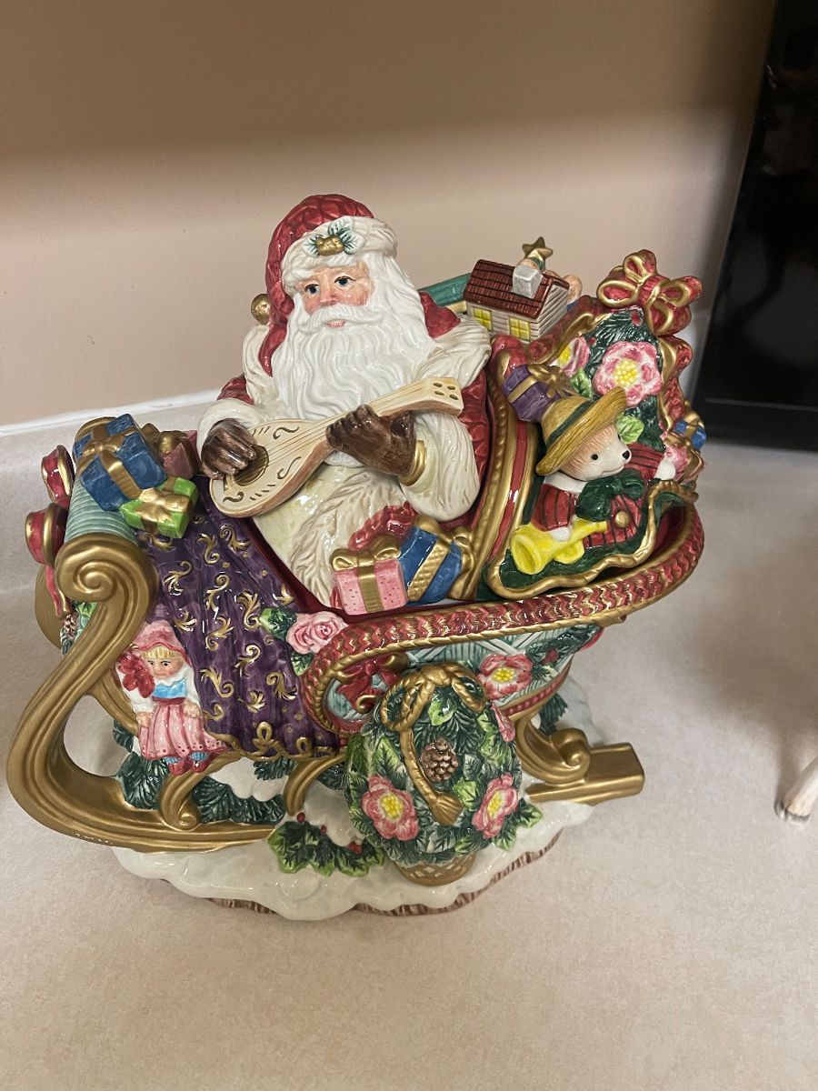 Loads of holiday decorations for Christmas, Easter, Valentines, fall, something for every season. Dining room table with 2 leaves and custom table pads, 8 dining room chairs, lighted break front, oak chest, sleeper love seat, vintage display cabinets. Occasional chairs, tons of children’s toys, books, dolls, etc. large collection of vintage tea sets beautiful Fitz and Floyd Santa tureen, pair of beautiful Fitz and Floyd reindeer, vintage tureens, antique porcelains, lamps, kitchen items, brass bed, vintage occasional tables, and artwork. Something for everyone.