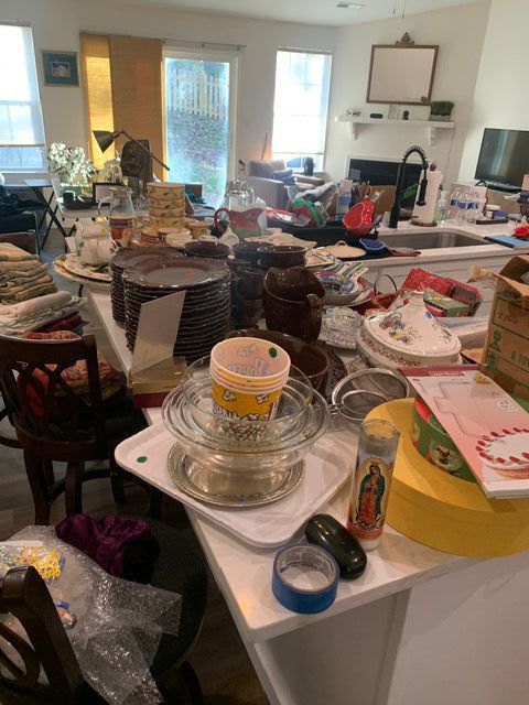 Large assortment of Christmas and Holiday items, china and dishware large assortment, assortment of kitchen appliances, mixer,food processor, brand new instapot, crockpots,blender a large assortment of cutlery, butcher block set of knives, glassware, crystal, pots and pans and baking ware available kitchen decor, lamps, pictures, wall art, home decor vases, office supplies and home office furniture, bric&brac, bedroom linens,towels,blankets and throws,tablecloths, dining linens, dvd's, vhs tapes, hardback and paperback books, five burner gas grill with tank with cover patio table set for chairs with umbrella, wheel chair, portable patient lift and other medical equipment, bedroom suit queen size mattress and...