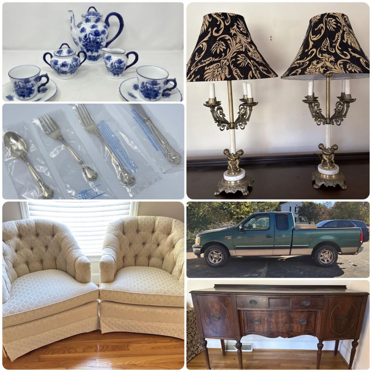 Mr. G.E. Goodson Relocation Auction Online Bidding Only through Weds. 11/19 www.TheLigonCompany.com Online Auction Featuring Ford F-150 Truck, Pair of Brass and Marble Cherub Lamps, Duncan Phyfe Style Sideboard, Heritage Henredon Wooden MCM Buffet, Vintage Silver Cross Carriage/ Pram, Vernon Grant Christmas Ornaments, Chantilly by Gorham Sterling Silver Place Setting, Brass Double Ink Well with Antique Spectacles, Clemson Tiger Print Signed Harold Rigsby, Tools, & More! Preview : Weds. 11/19, 4PM - 6PM by appointment. Sign up here: https://www.signupgenius.com/go/9040B48AFAC29A6FC1-60515007-preview On-Site Item Pick Up : Thurs. 11/20, 10AM - 6PM by appointment. Sign up here: https://www.signupgenius.com/go/9040B48AFAC29A6FC1-60515023-pick Location: 1934 Hayes Dr, Rock...