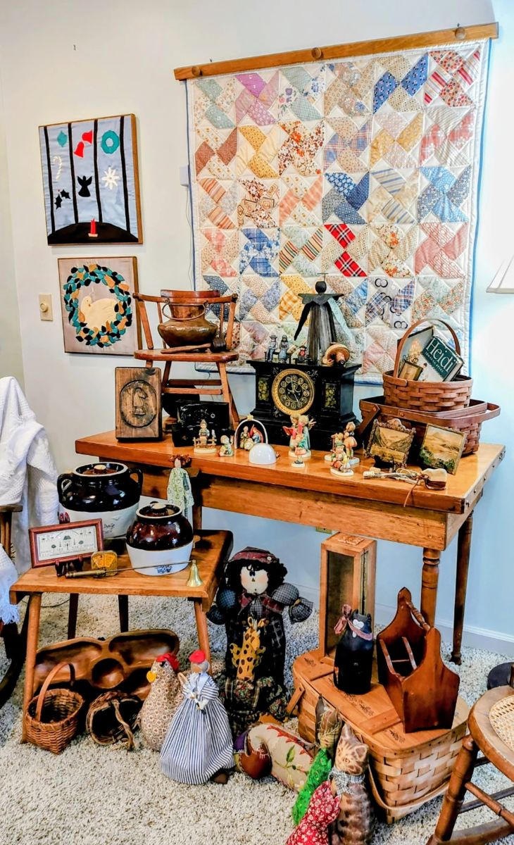 Something for everyone! Come shop for Christms decor, gifts and Tools! Great gifts for the tool guy or girl in your life! Vintage Clock, Vintage Bean Pots, Cooper Pot, decor, Wood Trays, Vintage Steins, Vintage Baby Clothes and Wedding Dress, Vintage Round Down Filled Comforter, 1950's Army Field cots shelving unit set, Pottery, Calfkiller merchandise, Longaberger Baskets, Baskets, Uranium Glass Dishes, Cutco Knifes, Primitive Decor, Hummel's, Vintage Sewn Wall Hangings, Rocking Chair, Vintage Rocker all Wood, Velvet Swivel Chair, Dresser, Tv Tray Wood, Vintage Kid Horse Rocker, Angels, Wood Chest, Cedar Chest, Vice, Portable Ac Unit, Small Wood Table, Couch...