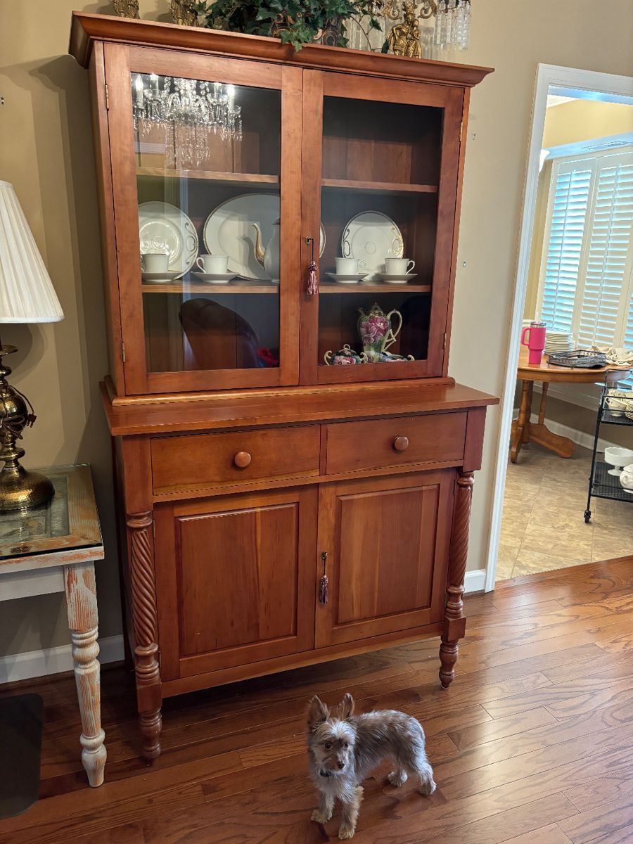 This home has a Jackson Press style cabinet, vintage vanity and bench, pottery, pair of crystal/brass candle sticks, lamps, Fostoria punch bowl and platter, crystal decanters, end tables, art glass, paintings, prints, Krautheim "Gilda" china, Lenox "Eternal" china, vintage corner chair, brass plant stand, vintage oak dining room table, wrought iron bar cart, Jadeite, small appliances, kitchen wares, Corning Ware, Pyrex, Maytag Neptune stackable washer and dryer, pair of upholstered chairs, Whirlpool stove (like new), like new dishwasher, iron patio set, yard art, wrought iron spring chair, wingback chair, vintage Victorian bench, side chairs, entry hall table, sofa, leather loveseat...