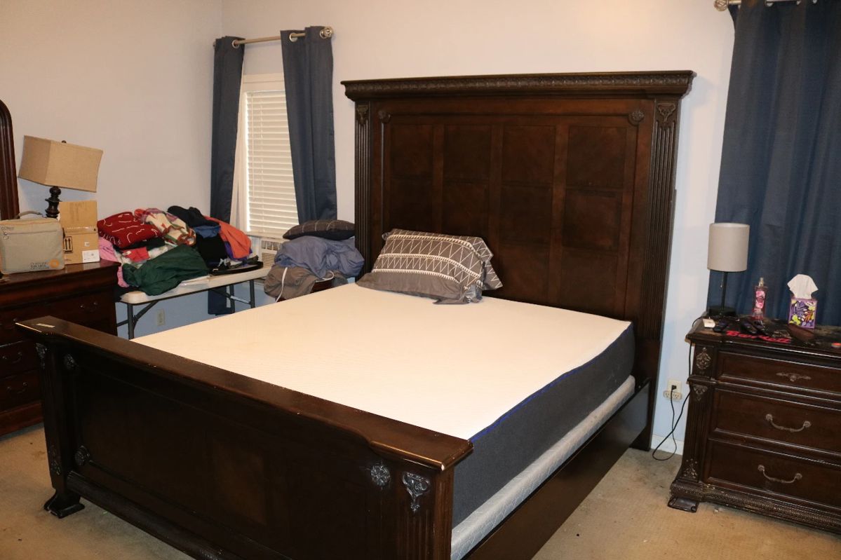 Nice modern house. This lady was a professional woman. Lovely clothes and shoes. Ill put sizes on this after we start working next Tuesday. Den furniture, Black leather Queen Bed 2 Twin Beds Desk Kid Stuff Baseball cards Living Room Furniture, Very nice couch with matching chair End Tables & Coffee Tables Master Suite, Black furniture, King Bed, 2 End Tables, Large Dresser, Head Board looks like an 7 ft headboard, has foot board. Nice big dresser Dining Room Table with matching China Cabinet Nice pictures thru out. Full Kitchen Theres a garage with many things Come see us.